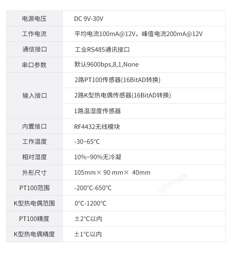 | 外形尺寸 : | 105*90*40 | 通讯接口 : | 工业RS485 |
