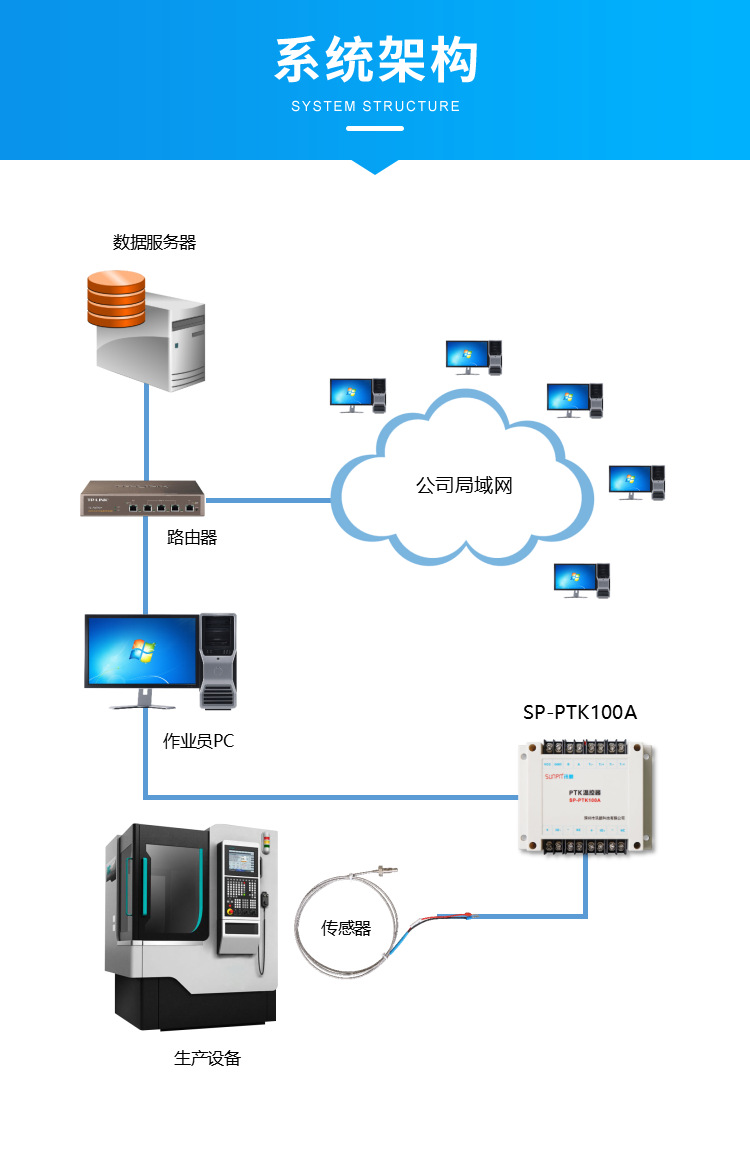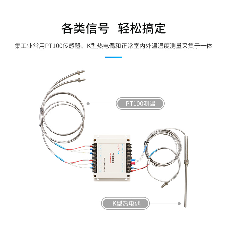 1、按接线要求接上K型热电偶、PT100探头、SHT1X温湿度传感器、DS18B20传感器;接上12V电源,接上RS485-RS232转换器线A接T/R+,B接T/R-