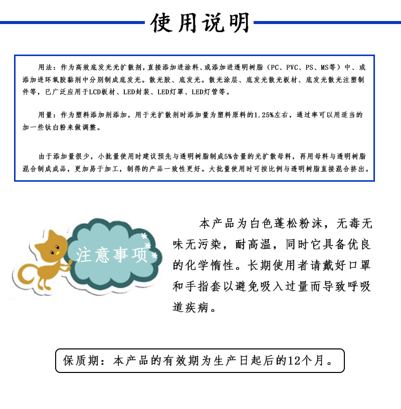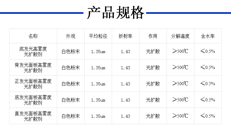 产了底发光扩散板专用高雾度光扩散剂。本产品是和颜悦色公司