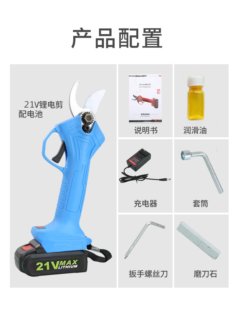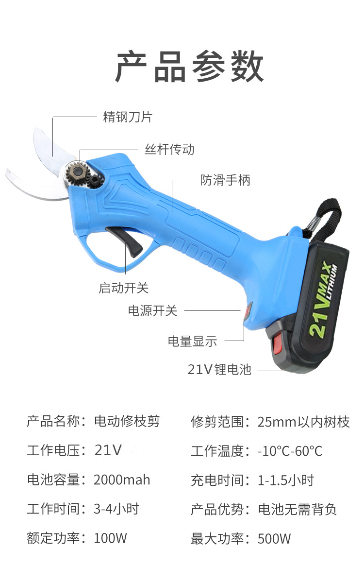 电动修枝剪 沃达尔 21V 树枝电动果树剪刀 园林园艺苹果高枝剪 充电式电剪刀