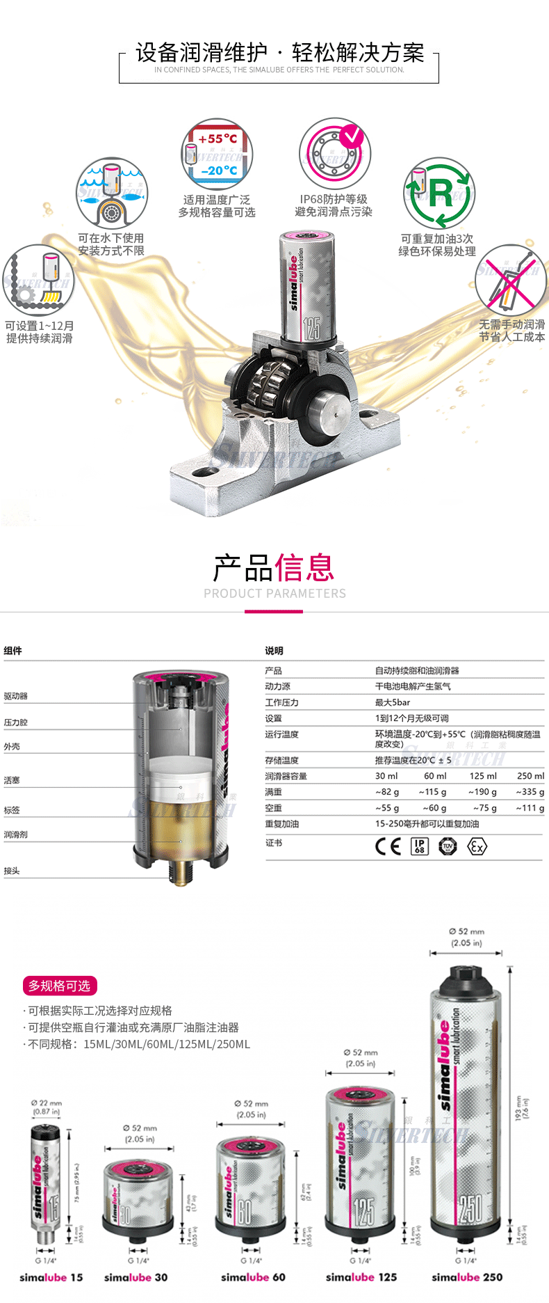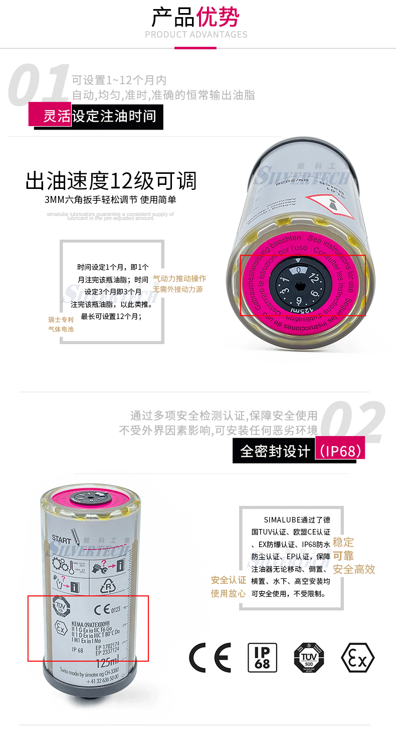瑞士森玛食品工业油 防水防爆全天候润滑设备自动注油器小保姆注油器SL18-125ML